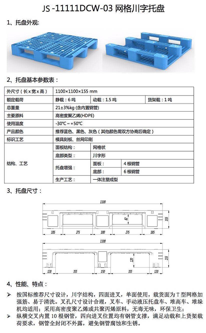 4、所有塑料托盤產(chǎn)品均可按照客戶要求加工成防靜電制品(見技術(shù)中心)。